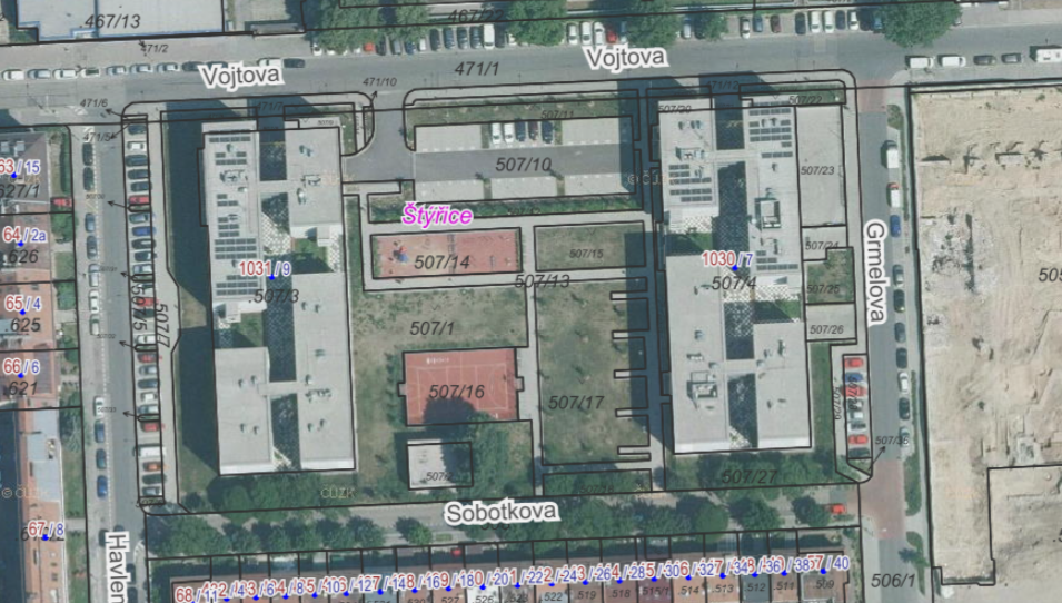 Statutární město Brno nabízí parkovací místa k pronájmu v objektu nově postavených bytových domů na adresách Vojtova 7 a Vojtova 9. K dispozici jsou krytá stání v podzemním patře obou budov a venkovní stání ve vnitrobloku. Vjezd je umožněn pouze nájemníkům pomocí čipu a prostory krytých stání jsou osazeny bezpečnostními kamerami.